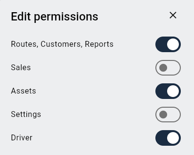 Permissions control what a user can access within Route Simplified. This allows you to tailor the interface to fit job-specific roles.